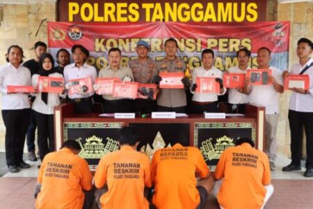 Dalam perkara itu, Polres Tanggamus berhasil menangkap empat tersangka dalam pengungkapan kasus ini. Para tersangka yang diamankan adalah inisial MB (42) dari Pekon Karang Agung, Kecamatan Semaka. EF (46) dari Pekon Tanjung Heran, Kecamatan Pugung, NR (43) dari Pekon Sukamerindu, Kecamatan Talang Padang dan HR (50) dari Pekon Pekonbalak, Kecamatan Wonosobo.