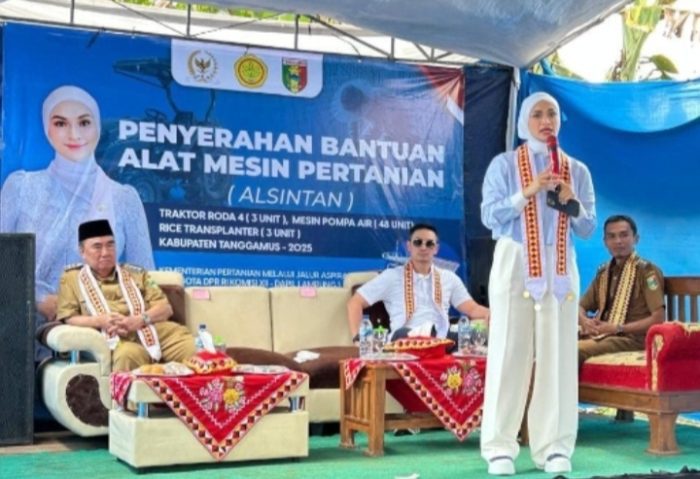 Perwiraone.com Tanggamus – Bupati Tanggamus M. Saleh Asnawi menyambut dengan penuh antusias kedatangan Ketua Fraksi PAN DPR RI sekaligus Wakil Ketua Komisi XII DPR RI, Putri Zulkifli Hasan, dalam rangka penyerahan bantuan alat dan mesin pertanian (ALSINTAN) kepada kelompok tani di Kabupaten Tanggamus pada Selasa 5 Agustus 2025.