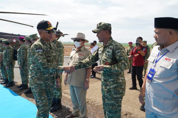 Perwiraone.com Lampung – Komandan Korem 043/Garuda Hitam (Danrem) Brigjen TNI Haryantana, S.H., bersama unsur Forkopimda Provinsi Lampung, menyambut kedatangan Menteri Pertahanan RI Jendral TNI (Hor) Dr. Sjafrie Sjamsoeddin, M.B.A., dan Panglima TNI Jenderal TNI Agus Subiyanto dalam kegiatan Panen Raya Kedelai TNI Angkatan Laut (TNI AL) Tahun Anggaran 2025 yang digelar di Markas Kimal Lampung, Desa Madukoro, Kecamatan Kotabumi Utara, Kabupaten Lampung Utara, Rabu (29/10/2025).