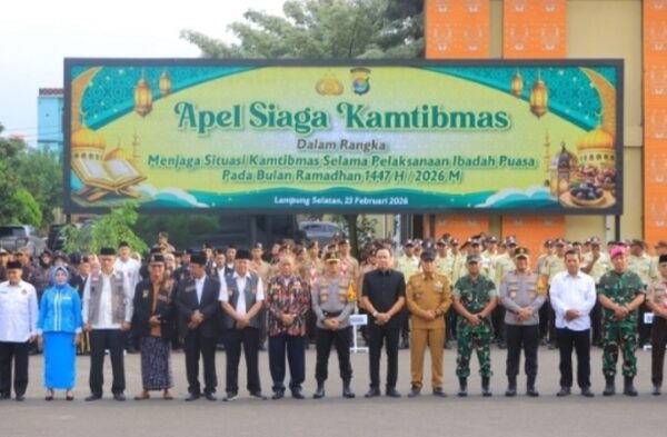 Perwiraone.com Lampung – Gubernur Lampung menghadiri Apel Siaga Keamanan dan Ketertiban Masyarakat (Kamtibmas) dalam rangka menjaga situasi kondusif selama pelaksanaan ibadah puasa Ramadan 1447 H/2026 M, di Lapangan Apel Kantor Kepolisian Daerah Lampung, Senin (23/02/2026), Sore.