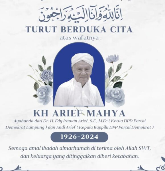 “Kami atas Nama Keluarga Besar Kepolisian Daerah Lampung bersama Bhayangkari, turut berbelasungkawa atas Meninggalnya KH. M Arief Mahya, Semoga Almarhum yang memiliki Nama Besar atas Perjuangan selama Hidupnya untuk Lampung dapat di Terima di sisi Allah SWT. ” Ungkap Irjen Pol. Helmy Santika, Rabu. (15/05/2024)