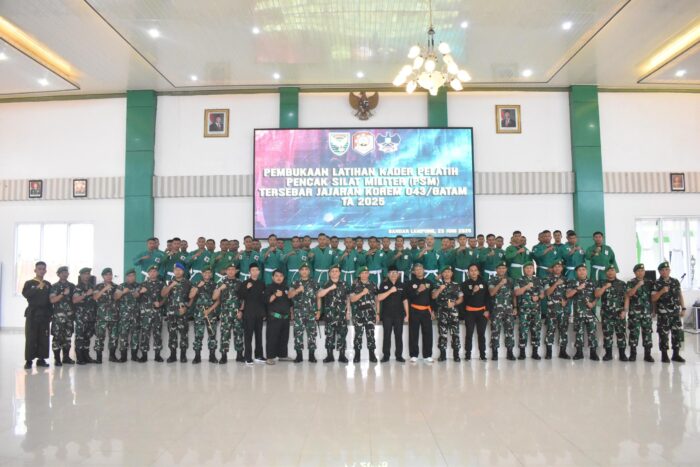 Perwiraone.com Lampung – Dalam rangka membentuk prajurit yang tangguh, berkarakter, dan memiliki jiwa bela diri tinggi sesuai nilai-nilai keprajuritan serta budaya bangsa, Korem 043/Garuda Hitam menggelar Latihan Kader Pelatih Pencak Silat Militer (PSM) tersebar di jajaran Korem 043/Gatam TA. 2025.