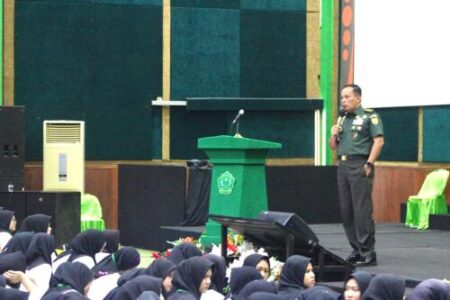 Perwiraone.com Lampung – Kepala Staf Korem 043/Gatam Kolonel Inf Enjang, S.I.P., M.Han., memberikan materi tentang Kehidupan Berbangsa, Bernegara dan Pembinaan Kesadaran Bela Negara, pada kegiatan Pengenalan Kehidupan Kampus bagi Mahasiswa Baru (PKKMB) Universitas Malahayati (UNMAL) Bandar Lampung, bertempat di Gedung Graha Bintang Universitas Malahayati Jl. Pramuka Kemiling, Bandar Lampung. Rabu (25/09/2024).