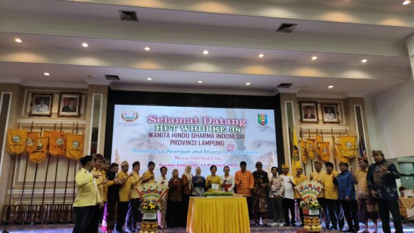 Bandar Lampung, 14 Februari 2026 – Wanita Hindu Dharma Indonesia (WHDI) Provinsi Lampung memperingati HUT ke-38 di Balai Keratun Lantai 3, Pemerintah Provinsi Lampung, dengan tema “Pemberdayaan Perempuan untuk Keluarga Sehat dan Sejahtera Menuju Indonesia Emas”. Kegiatan ini dihadiri pengurus WHDI dari seluruh kabupaten/kota se-Lampung.