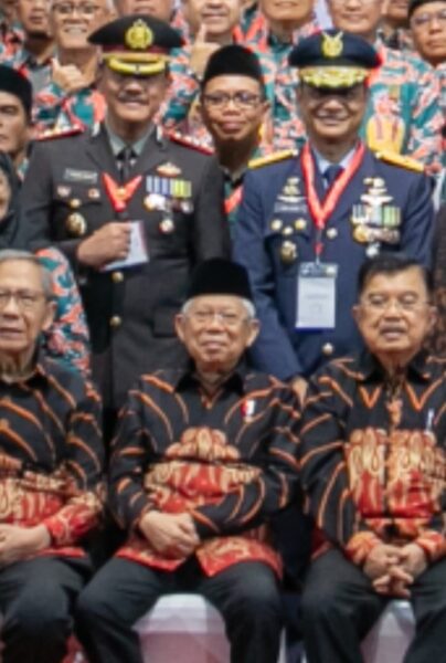 Wapres Ma’ruf Amin didampingi Ketum PMI Jusuf Kalla saat menyematkan tanda jasa kepada ribuan donor darah ini.