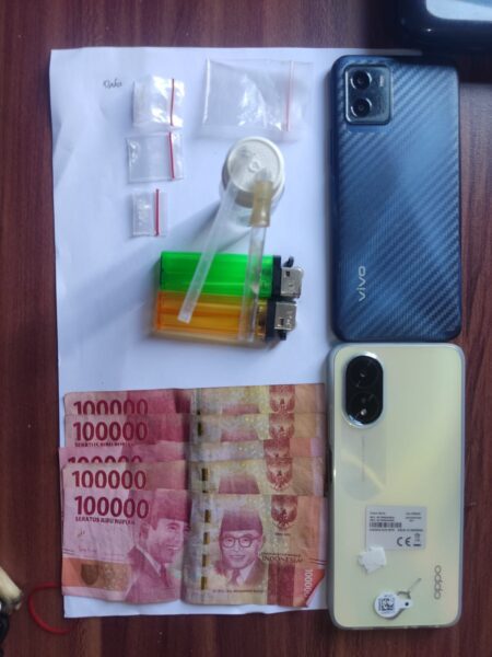 Selanjutnya pihak kepolisian juga berhasil mengamankan barang bukti (BB) berupa 1 (satu) buah plastik klip sedang yang berisikan 3 (tiga) buah plastik klip bening ukuran kecil yang didalamnya terdapat Narkotika jenis Sabu, 1(satu) perangkat alat hisap (BONG), 2(dua) buah korek warna merah dan kuning,1(satu) buah pirek.