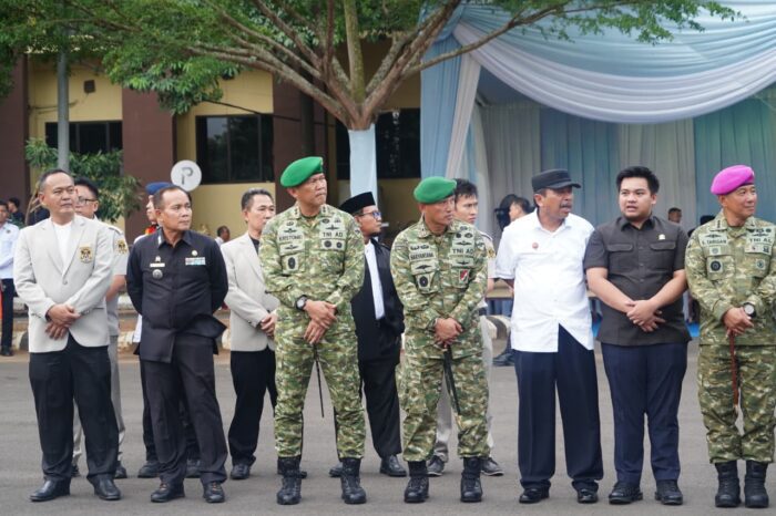 Perwiraone.com Lampung – Pangdam XXI/Raden Inten Mayjen TNI Kristomei Sianturi, S.Sos., M.Si. (Han) menghadiri Upacara Farewell and Welcome Parade Kapolda Lampung, yang ditandai dengan penyerahan Pataka Polda Lampung dari Irjen Pol Helmy Santika, S.H., S.I.K., M.Si. (Kapolda Lama) kepada Irjen Pol Helfi Assegaf, S.I.K., M.W. (Kapolda Baru), bertempat di Mapolda Lampung, Jl. Terusan Ryacudu, Way Huwi, Kecamatan Jati Agung, Kabupaten Lampung Selatan, Senin (3/11/2025).