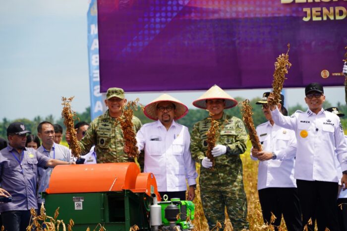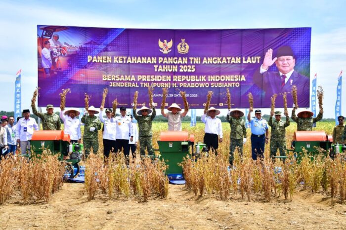 Panen raya yang dilaksanakan dalam rangka mendukung program ketahanan pangan nasional sesuai dengan Asta Cita Presiden, kegiatan tersebut juga dihadiri, Panglima TNI, Kepala Staf Angkatan Laut, Pangkoarmada RI, Aster Panglima TNI, Kapuspen TNI, Kepala Badan Pangan Nasional, Gubernur Lampung, Kapolda Lampung, Danrem 043/Gatam, beberapa Menetri Kabinet Merah Putih, Sekretaris Kabinet, Kepala Sekretariat Presiden, Kepala Staf Kepresidenan RI, dan sejumlah pejabat Negara lainnya.