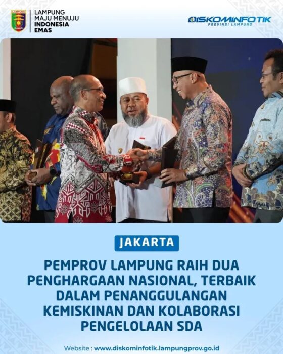 Perwiraone.com Lampung — Pemerintah Provinsi Lampung mencatatkan prestasi gemilang di tingkat nasional dengan meraih dua penghargaan bergengsi dalam satu hari, Senin (1/12/2025).
