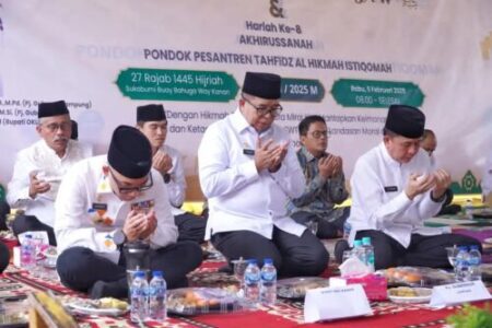 Perwiraone.com Way Kanan — Pj.Gubernur Samsudin menghadiri Peringatan Isra Mi’raj 1446 H dan Hari Lahir Akhirusa nah Pondok Pesantren Al Hikmah Istiqomah, di Halaman SMP/SMK AHI Kampung Sukabumi Buay Bahuga Way Kanan pada Rabu 5 Febuari 2025.