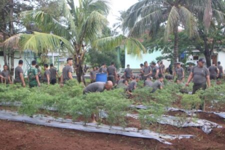 Perwiraone.com Lampung – Sebanyak 285 orang prajurit dan PNS Korem 043/Gatam dan jajaran melaksanakan gotong royong kerja bakti menyiapkan Taman Urban Farming seluas 5.000 M² yang berada di Satuan Logistik (Satlog) Jl. Bypass Soekarno-Hatta Sukarame Bandar Lampung pada Jum’at 6 Desember 2024.