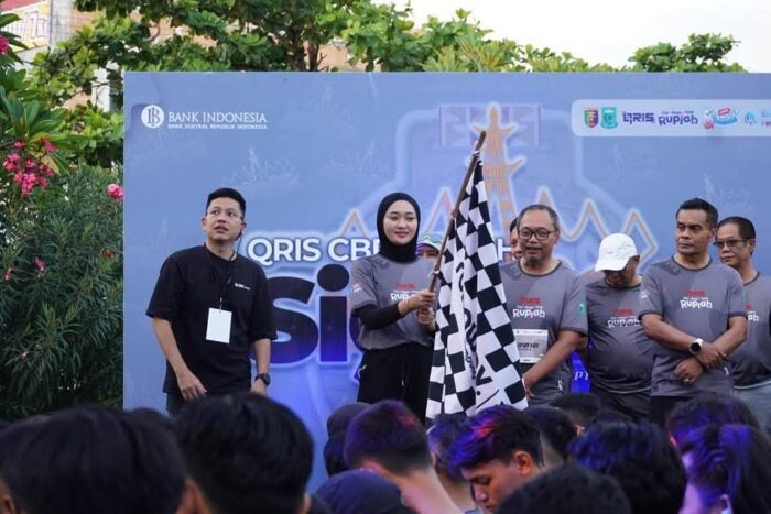 Perwiraone.com Bandar Lampung — Wakil Gubernur Lampung Jihan Nurlela bersama Kepala Perwakilan Bank Indonesia (BI) Provinsi Lampung Bimo Epyanto, Direktur Eksekutif Departemen Komunikasi BI Junanto Herdiawan, serta Kepala Otoritas Jasa Keuangan (OJK) Provinsi Lampung Otto Fitriandy secara resmi melakukan kick off implementasi QRIS Tap pada kegiatan QRIS CBP Siger Run 2025, Minggu (28/09/2025) di Lampung City Mall, Bandar Lampung.