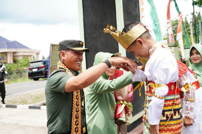 Kedatangan rombongan Danrem disambut hangat oleh Dandim 0426/Tulang Bawang Letkol Kav Delvy Marico, S.E., M.I.P., bersama unsur Forkopimda Kabupaten Tulang Bawang, serta diiringi tari adat Lampung sebagai bentuk penghormatan dan penyambutan khas daerah.