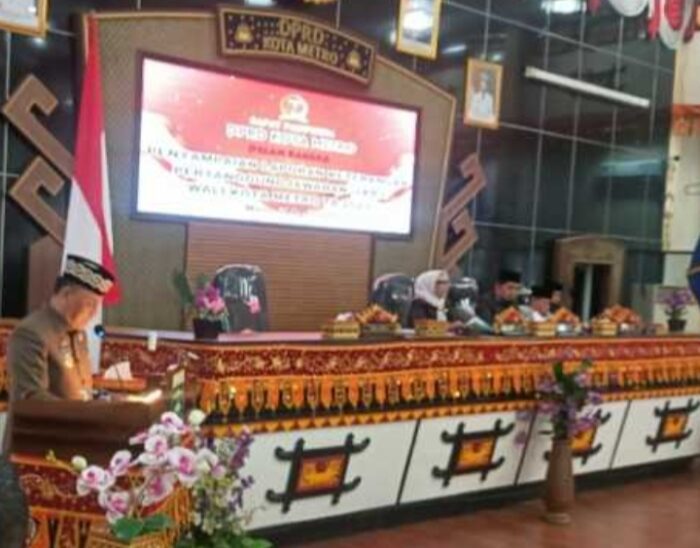 Rapat paripurna yang digelar di ruang sidang utama DPRD ini dipimpin langsung oleh Ketua DPRD Kota Metro, Ria Hartini dan dihadiri oleh jajaran pimpinan dan anggota DPRD, Forkopimda, Sekretaris Daerah Kota Metro, para staf ahli dan asisten, Kepala OPD, para camat, lurah, pimpinan instansi vertikal, serta insan pers.